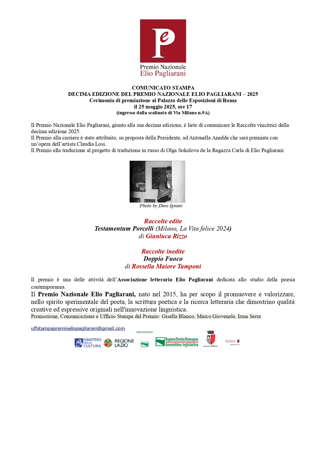Premio Nazionale Elio Pagliarani - Decima edizione - CS raccolte vincitrici