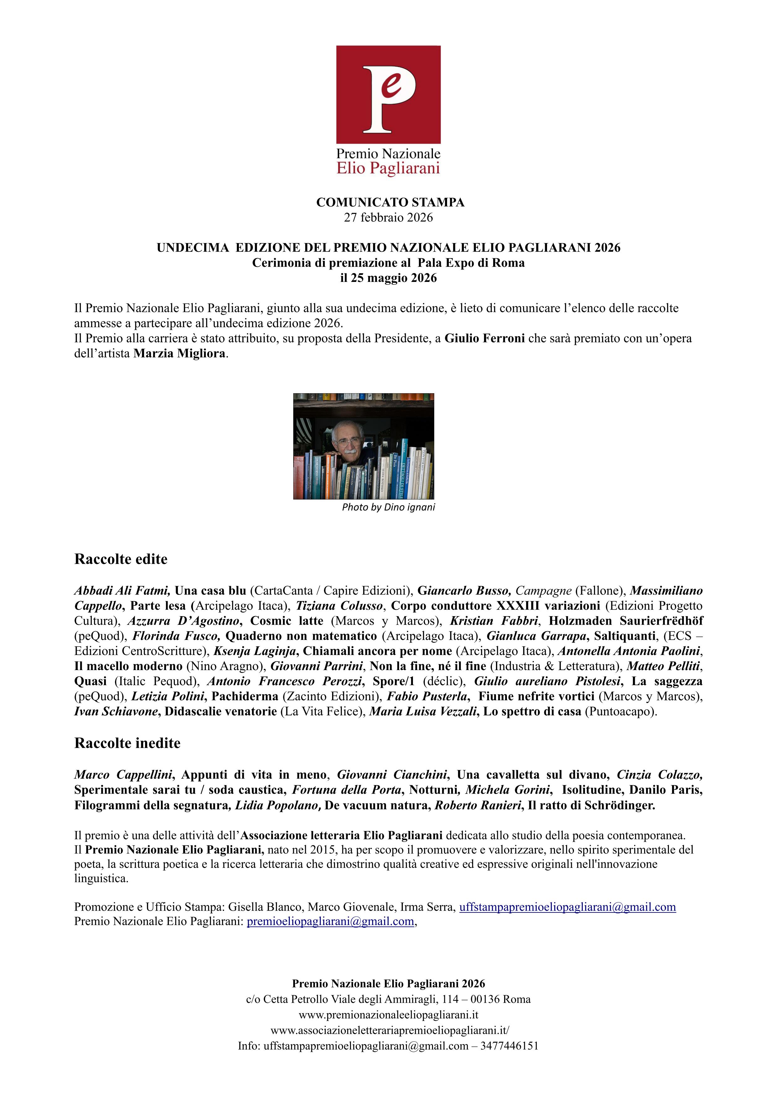 27/02/2026 Com. stampa opere ammesse alla partecipaz. alla XI ediz. del Premio Elio Pagliarani, 2026.pdf <- News