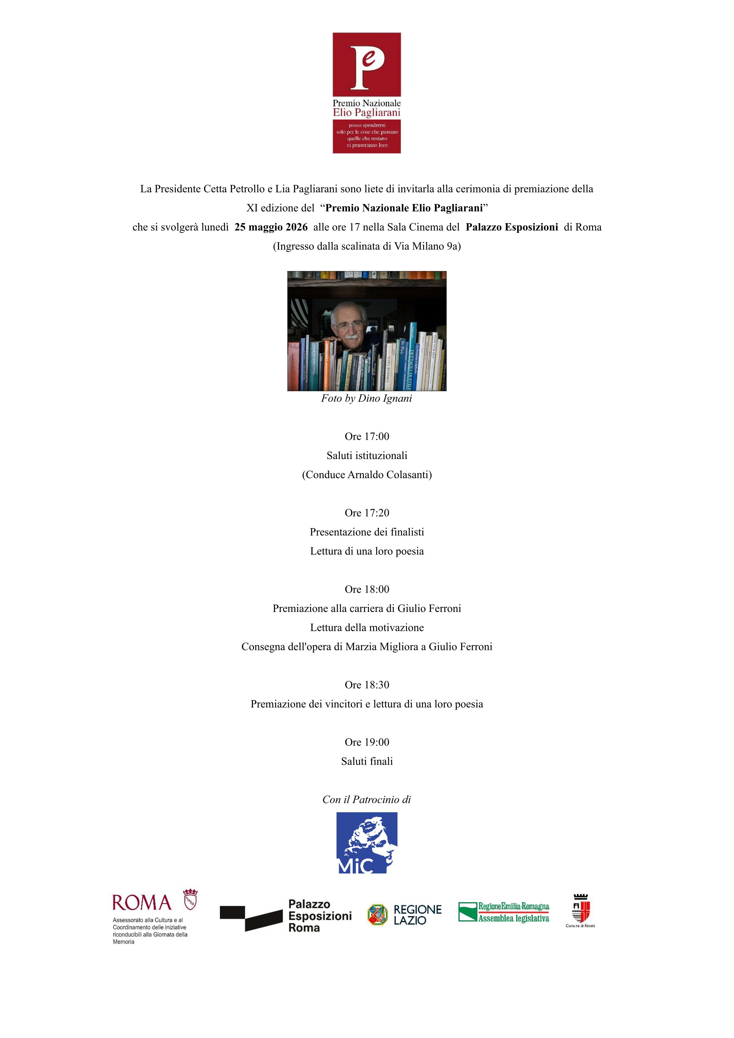 Cerimonia di premiazione della XI edizione del “Premio Nazionale Elio Pagliarani”